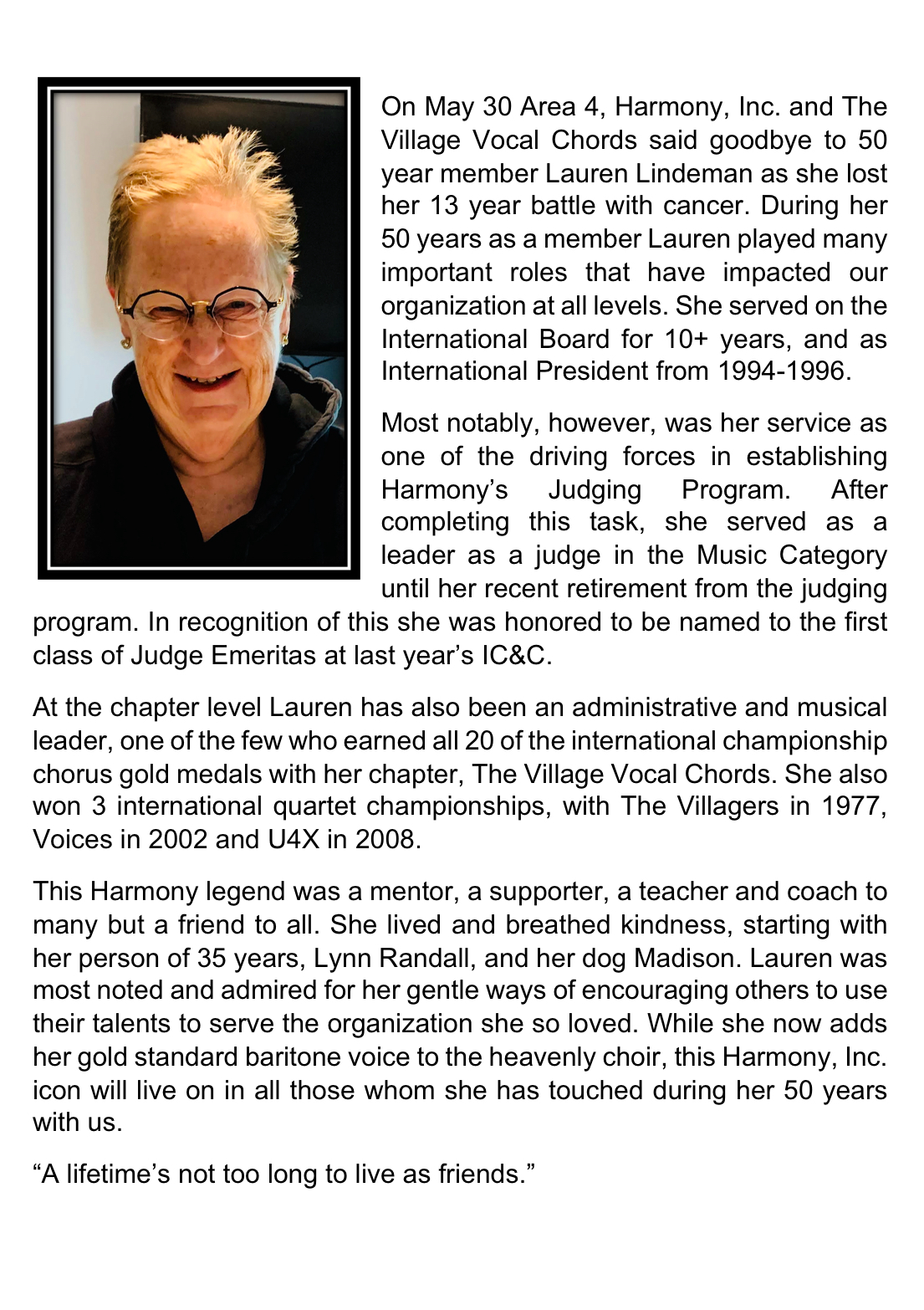 | Share Your Photos | Contest Scores (links to harmonyinc.org) |